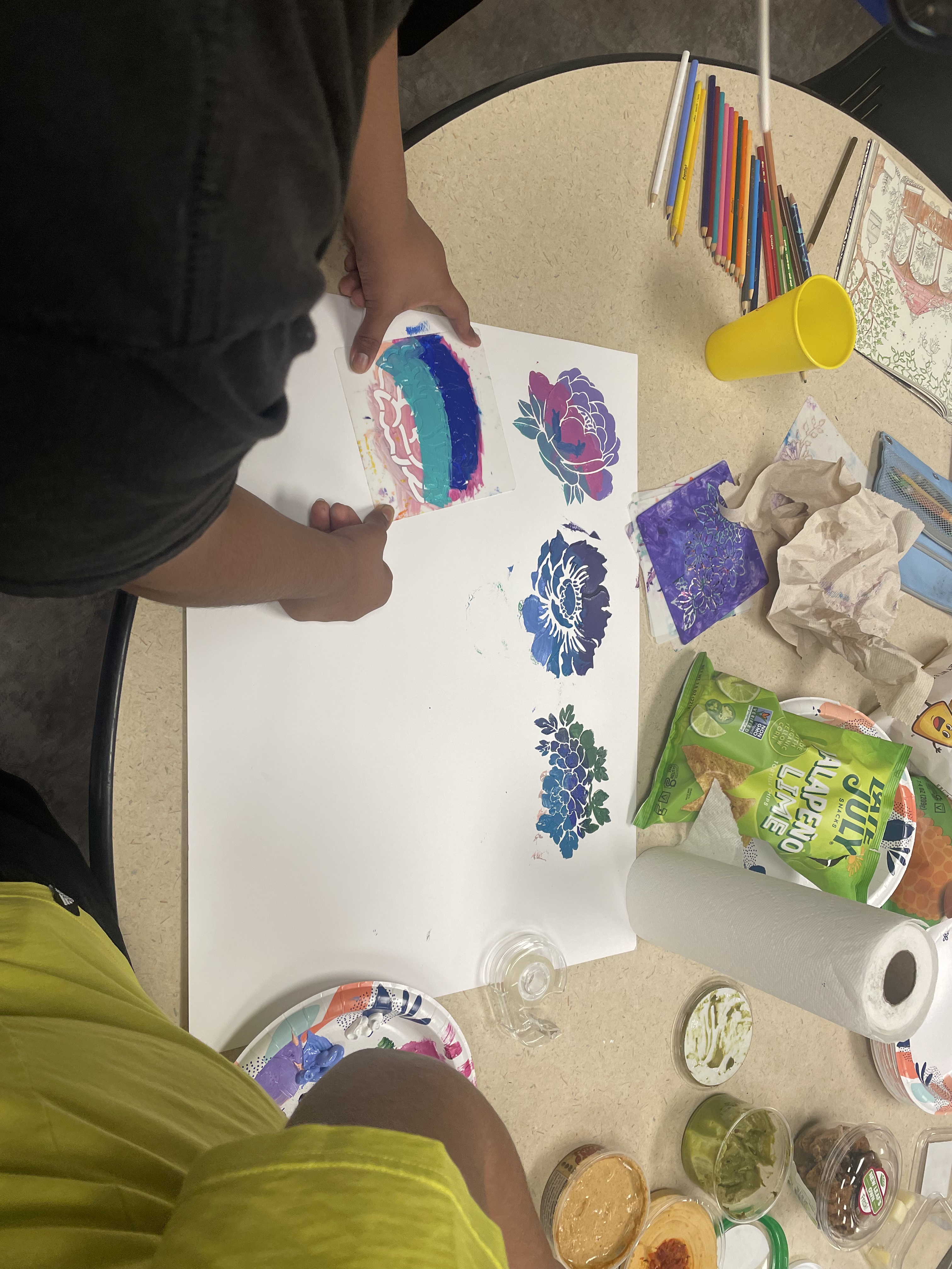 Weekly Art Jams for Housing Residence at Rebele Shelter. This was a weekly art co-working space for residence. I wanted my first projects to be something that allowed me to become better acquainted with the residence and working flow of Housing Matters. There are a ton of moving parts. Onboarding as I learned is ongoing it seems. There are always new things to learn and adjust to. In these first few weeks I got to know several families and volunteers while facilitating art projects that ranged from coloring, to portrait painting, goo making, and mixed media 2d experimentation. This felt like a worthy endeavor and as the weeks went on more residence showed up for the weekly events. The purpose was to create space for people in crisis to safely create, express and explore with tools and support.