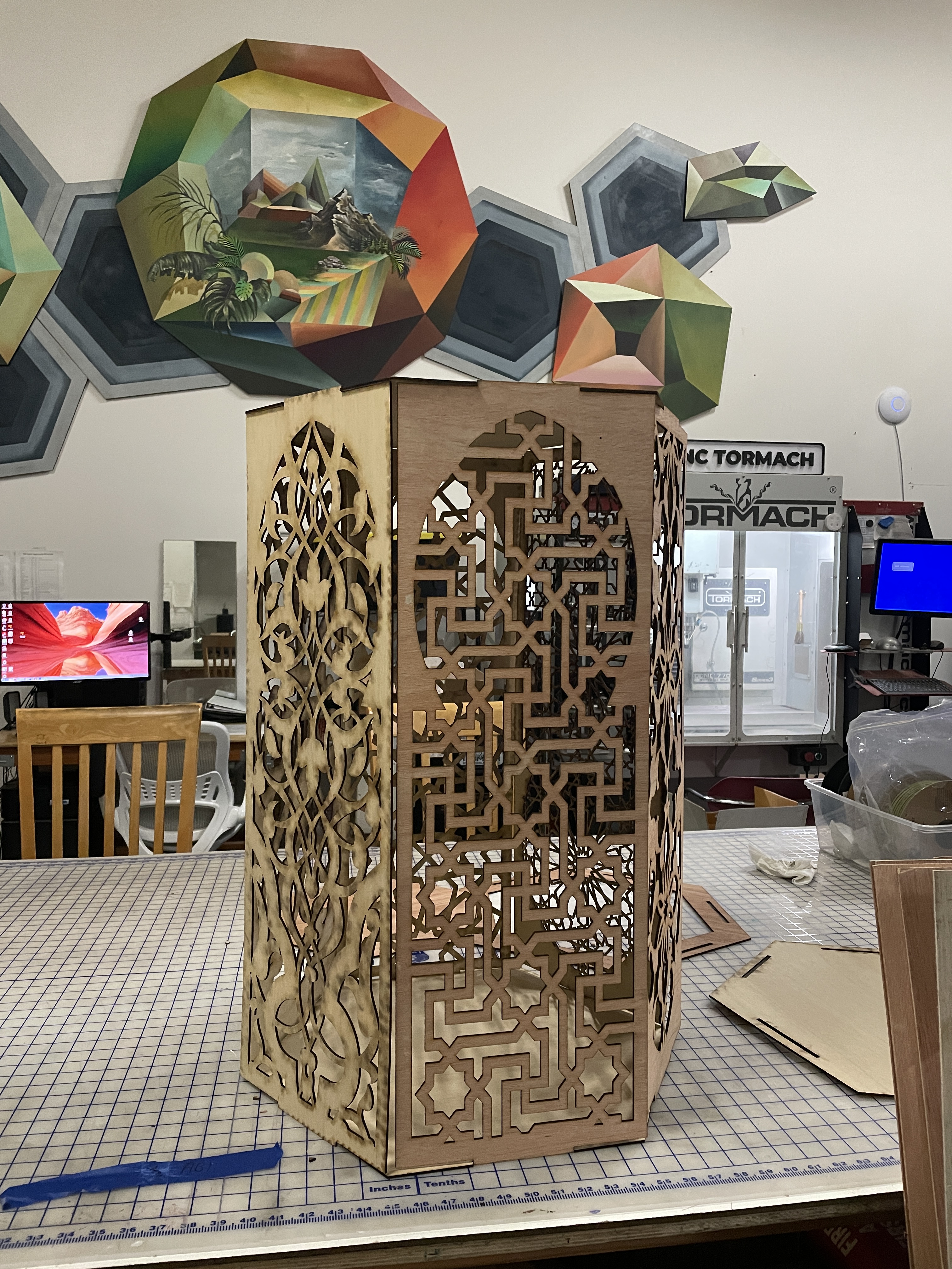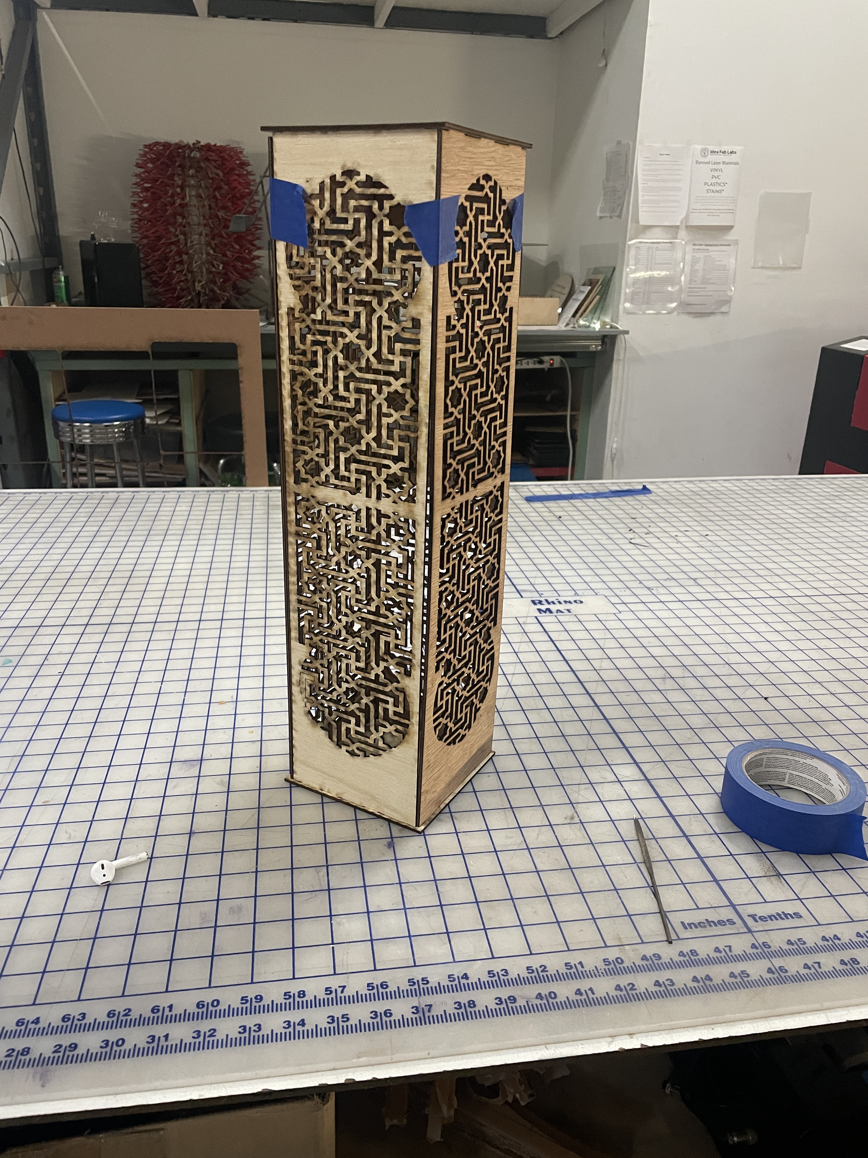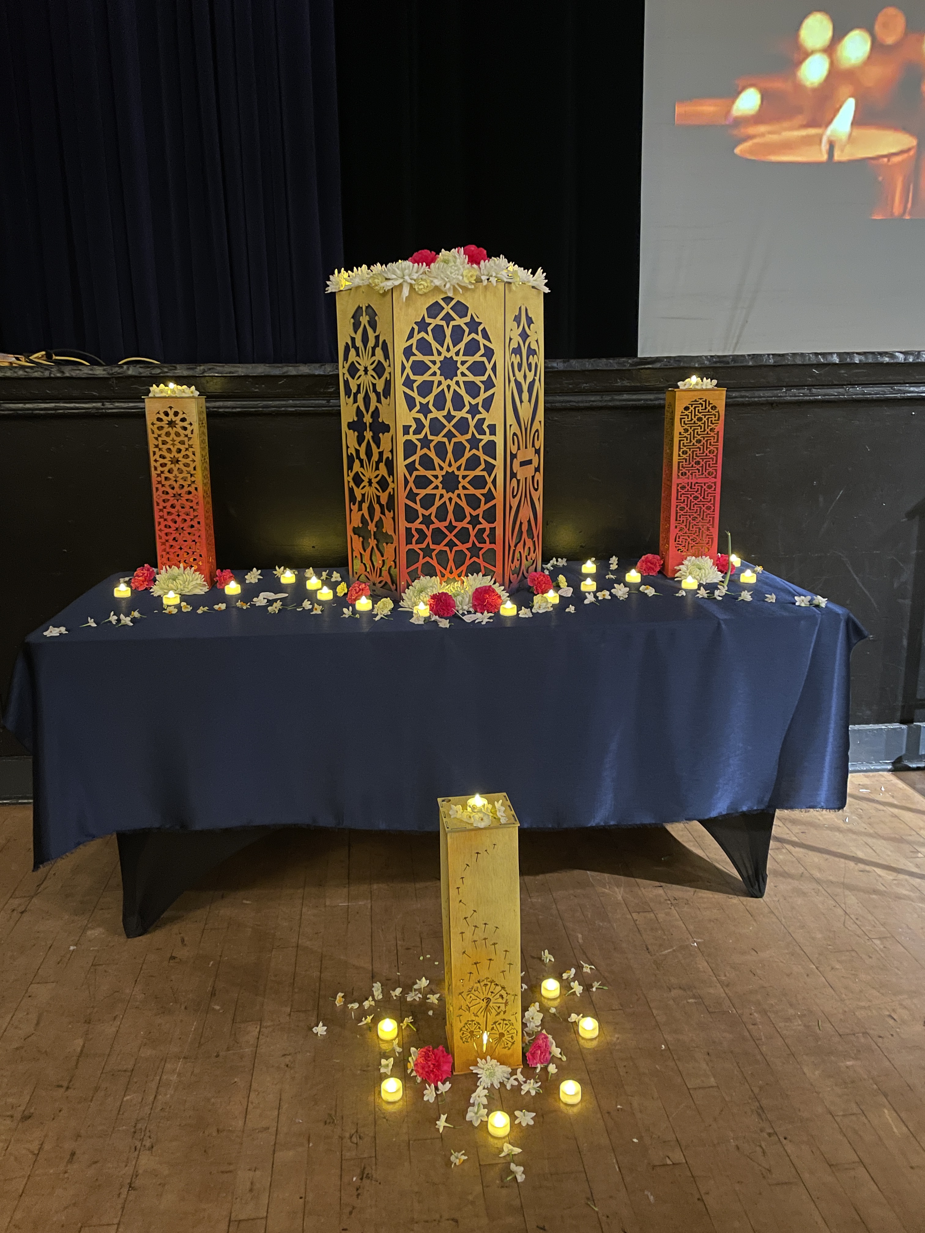 The second project was an alter for the yearly homeless memorial. I chose to do this project to create an intentional space for those grieving the loss of a loved one to place items, letters, and candles. The letters and names placed on the alter were created with wildflower paper and then planted. This was a laser cut sculpture I designed and assembled.