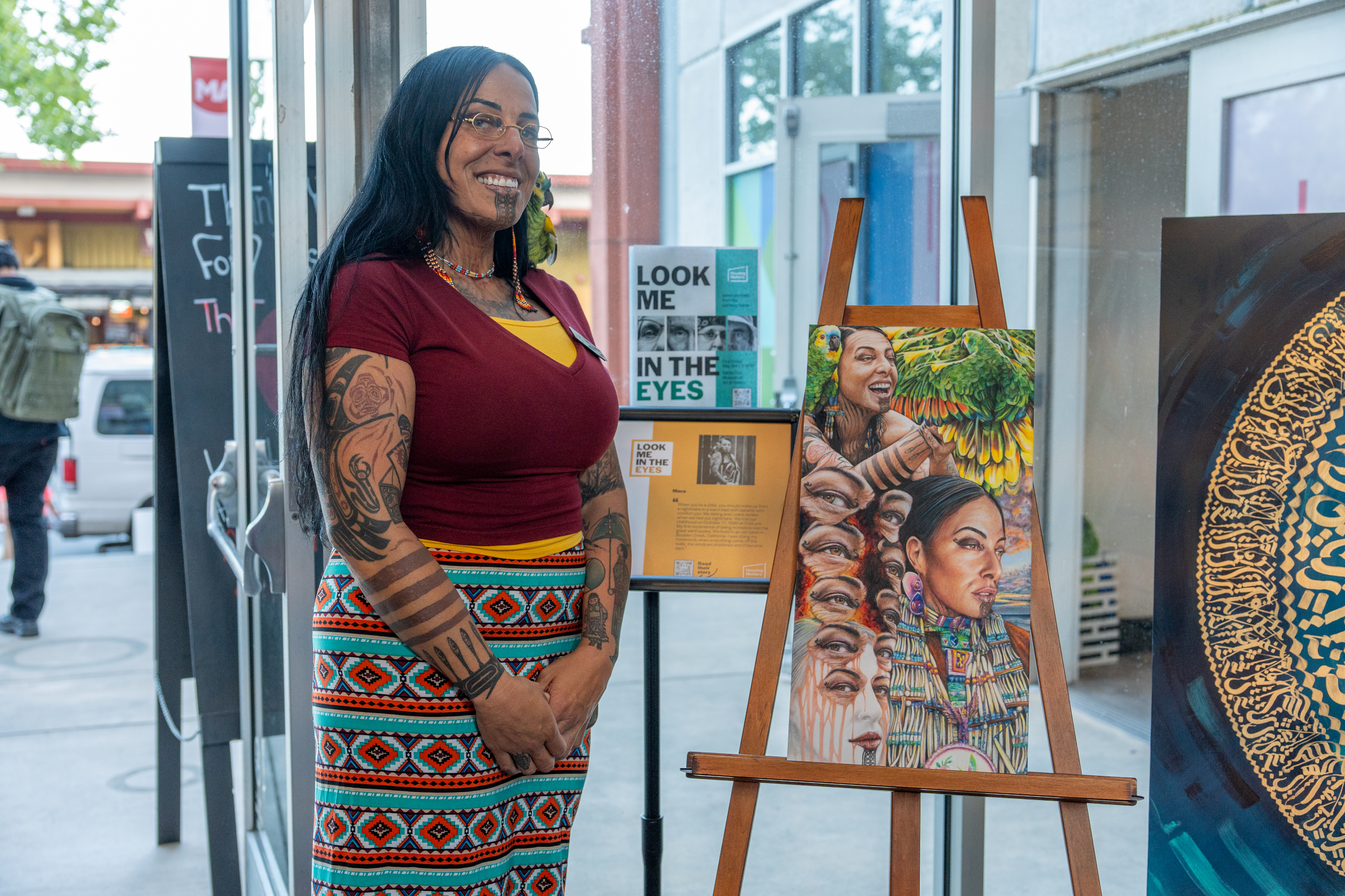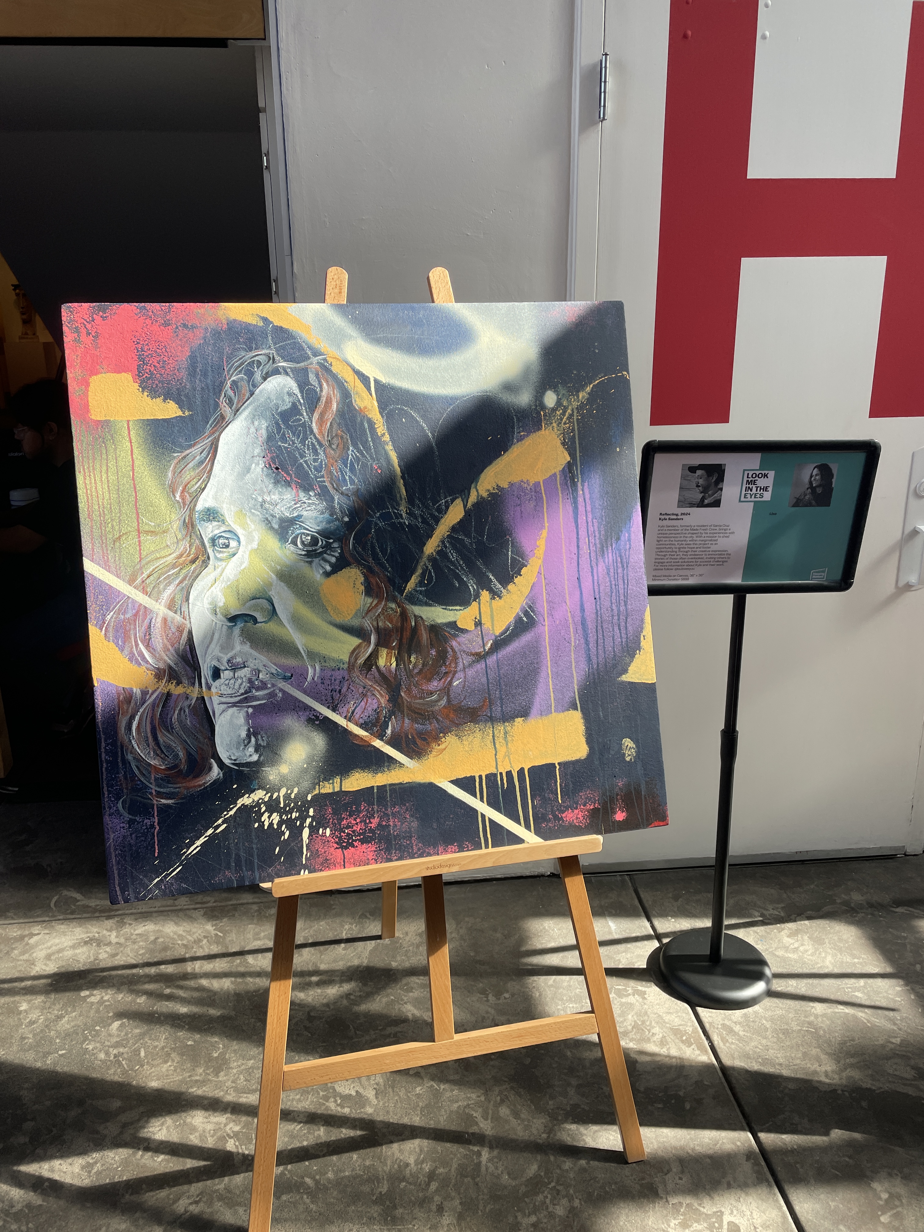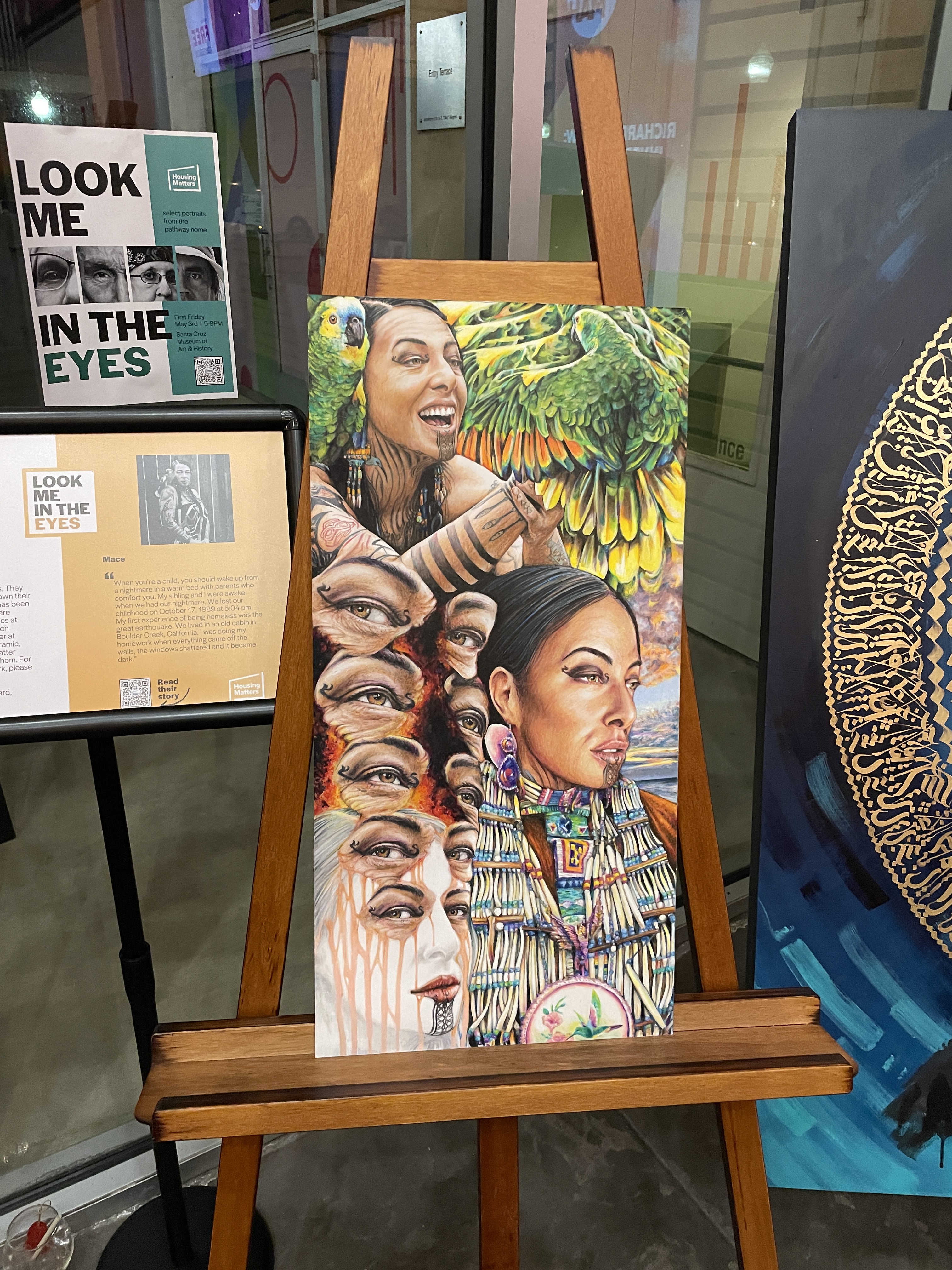 Our largest project together so far has been Look Me In the Eyes. An art show I curated between those with lived experience, local artists, and a local photographer named Abram Katz. We connected with community member who have worked with Housing Matters on their journey to stable housing, several of whom are part of the speakers bureau. We invited collaborators to share their stories, and have portraits taken. The portraits were given to other local artist collaborators to create paintings with for the final show. The storytellers with lived experience and the artists (many of whom also have lived experience of being unhoused) come together at the Santa Cruz Museum of Art and History to invite the public into our collaborated work. All participants were compensated for their contribution.