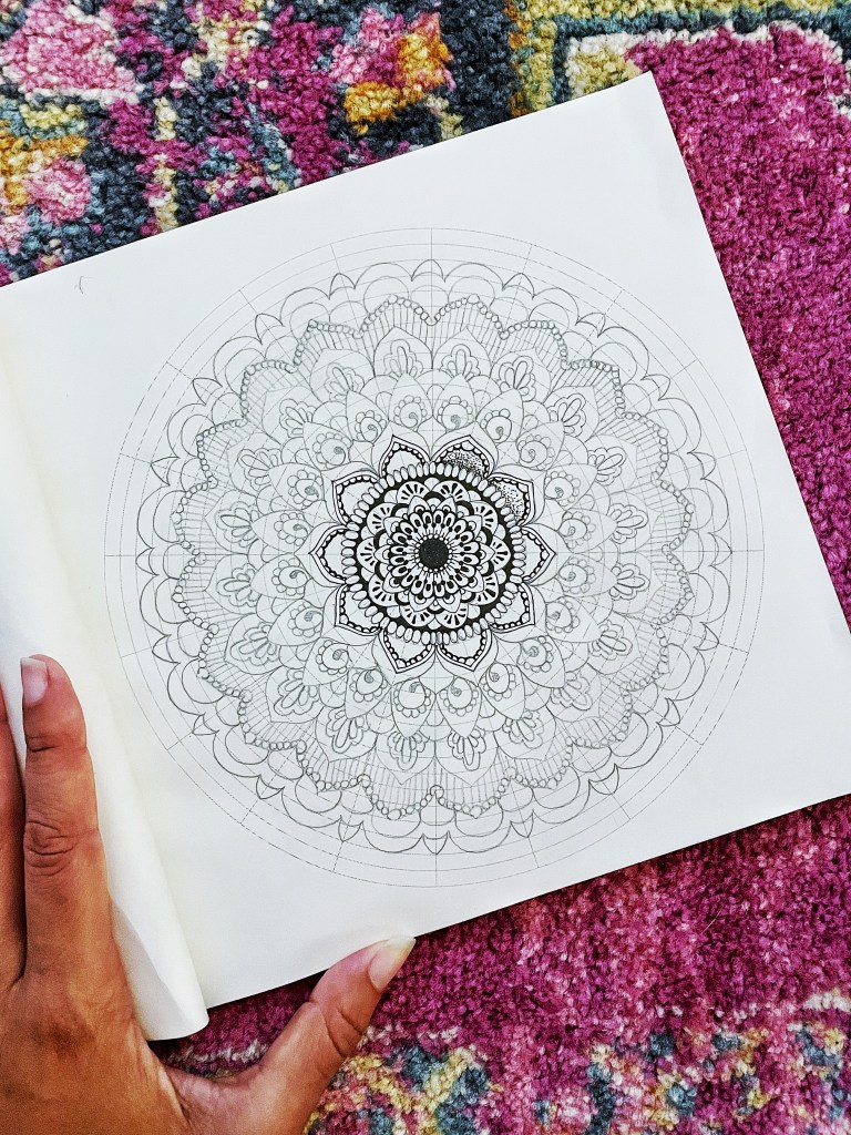 A beautifully designed coloring book with all original artwork. Mandala coloring pages, journal prompts, and space to write.